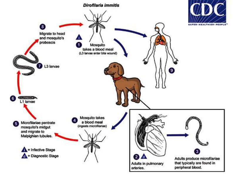 - 沒有做心絲蟲預防的動物被病媒蚊叮到→變成感染心絲蟲的動物