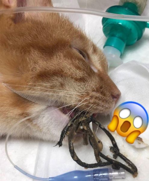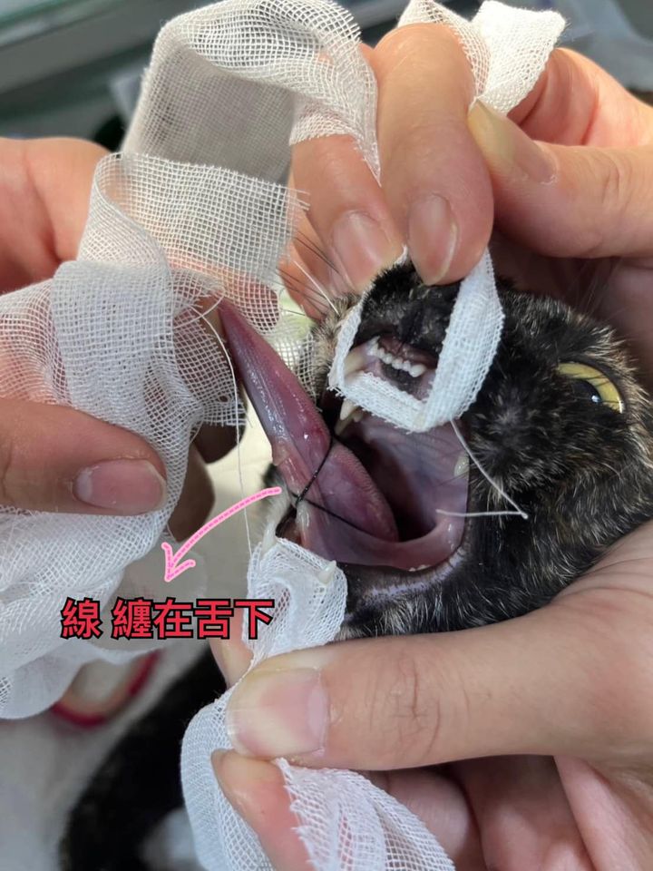 吞針線的貓運氣好在口腔就可以發現,較為容易取出。
