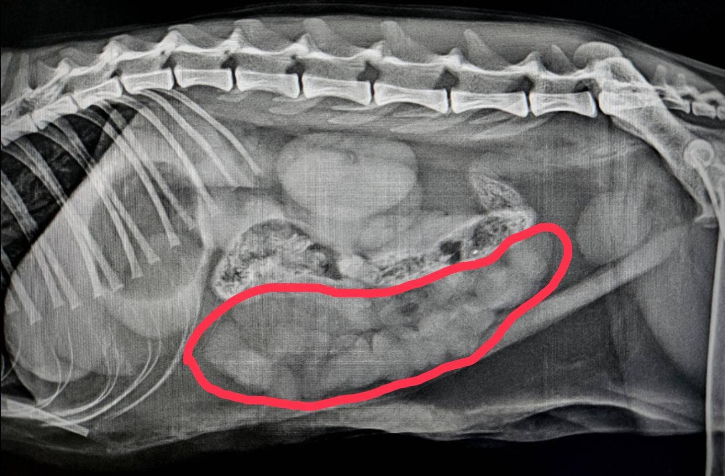 安排 #X光 拍攝後,醫師確認芒果還在胃中,且還有不少食物
