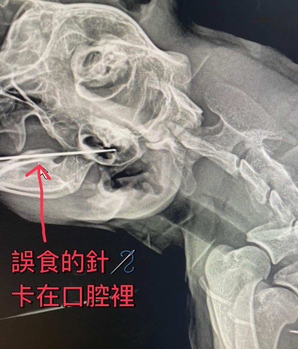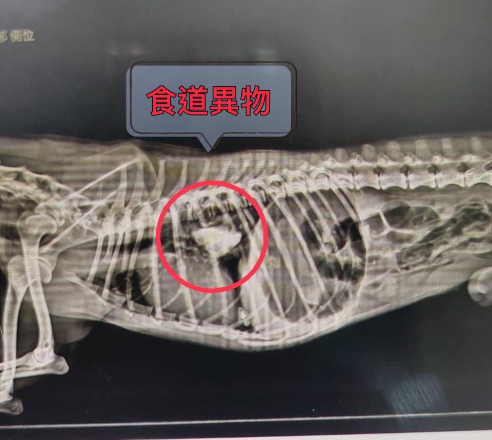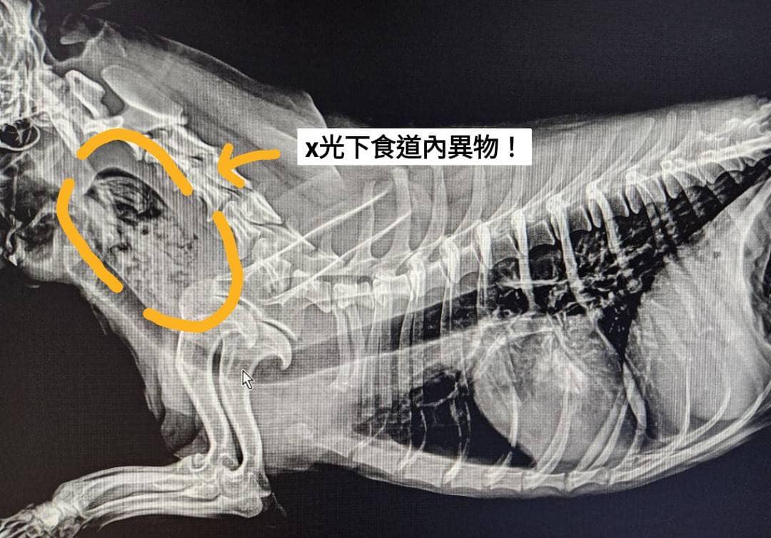 透過X光檢查發現骨頭竟然卡在食道‼️