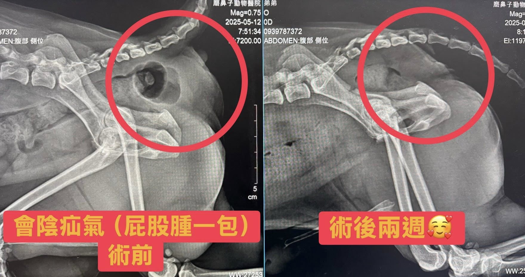 搭配X光和超音波,確定了阿弟的肌肉破洞腸道及脂肪從會陰跑出來了‼️