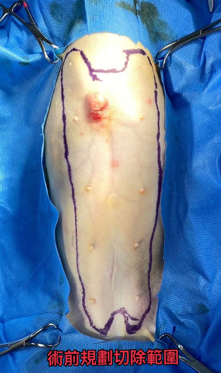 切除前也需要評估每隻狗狗或貓咪的狀況做好皮瓣規劃,達到最好的癒合效果~~